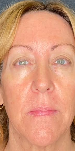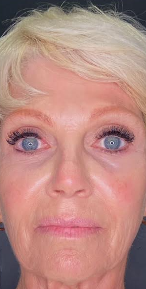 This patient was treated with filler to lift the cheeks and softly enhance the temples. Wrinkle relaxer was used to smooth the forehead, frown lines, and chin, lift the brows, and slim the jawline. The result is a refreshed, balanced, and natural look!